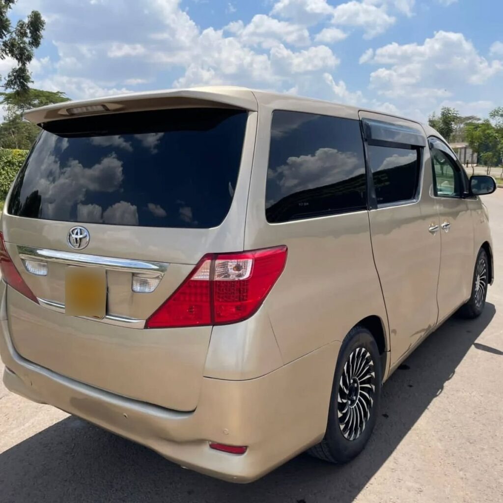 A Toyota Alphard hire in Uganda, kampala is a premium family car rental Uganda, also a luxury chauffeured car with a comfortable seating configuration of 7 passengers though we have even those with a seating configuration of 8. A Toyota Alphard features high end amenities like; modern audio systems with Bluetooth Audio streaming, AC, Available for hire at 80 Dollars.