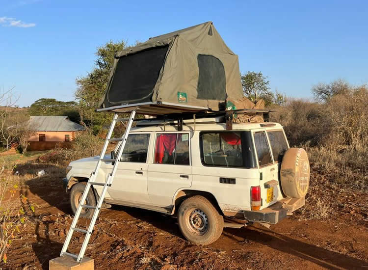 Hire with a rooftop tent: a standard rooftop tent for to people costs extra 20 US$ per day, while a double rooftop tent costs 40 US$ per day and the family tent costs extra 30 US$ per day